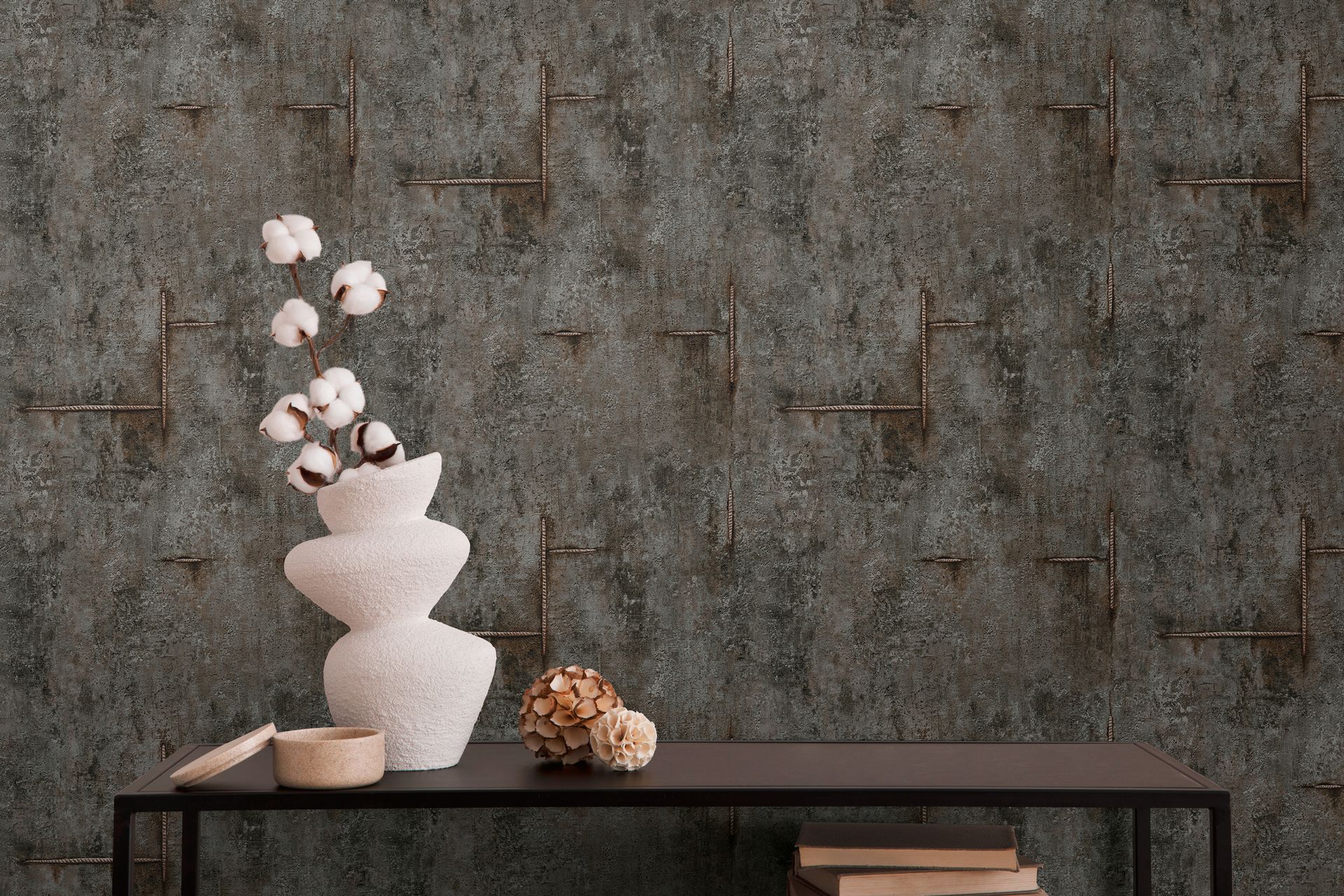 Perfekt geeignet als Akzentwand im Wohnzimmer, Arbeitszimmer oder Flur. In Kombination mit warmen Materialien wie Holz oder Leder entstehen spannende Kontraste zwischen rauer Industrie-Ästhetik und gemütlicher Wohnatmosphäre.