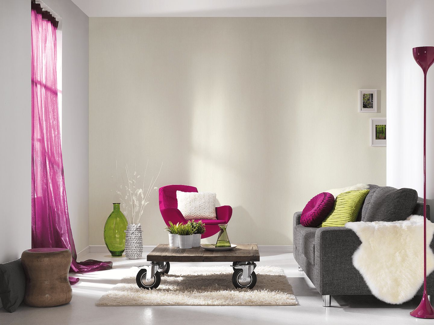 Frische Grün- und Rosatöne, lichtes Blau und Grau beleben Geist wie Sinne und verströmen eine heitere Atmosphäre. Rostrot und Violett setzen beschwingte Akzente.