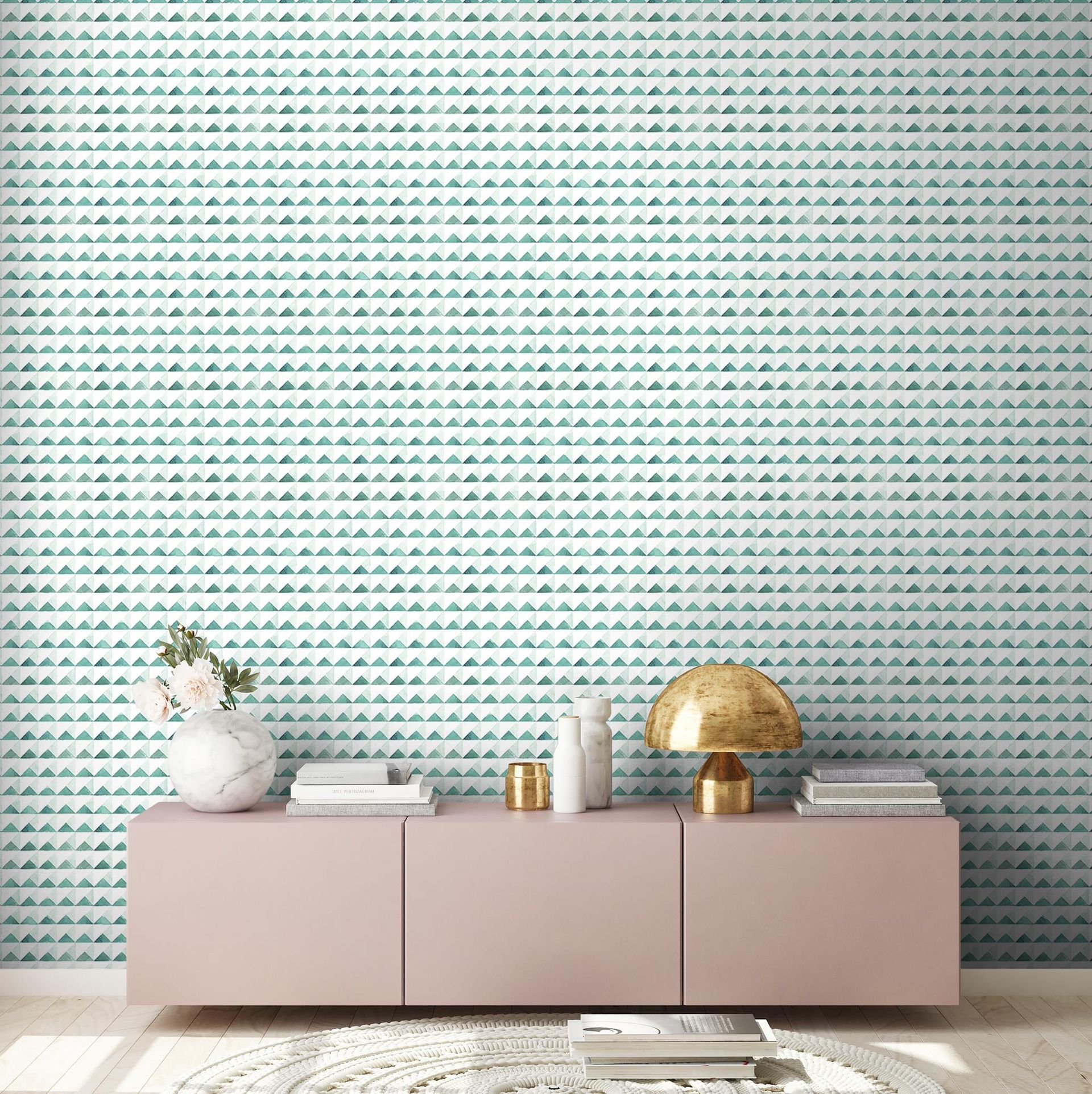 Diese moderne Fototapete von A.S. Création aus der Kollektion XXL 5 zeichnet sich durch ein ansprechendes, geometrisches Dreiecksmuster aus. Die harmonische Kombination aus Weiß und verschiedenen Türkistönen, ergänzt durch feine Grau- und Hellblau-Nuancen, verleiht jedem Raum eine frische und dynamische Atmosphäre. Das regelmäßige, jedoch abwechslungsreiche Design der Linien und Dreiecke bietet eine visuell ansprechende Textur. Diese Tapete ist ideal für ein zeitgemäßes Wohnambiente und lässt sich leicht mit diversen Einrichtungsstilen kombinieren.