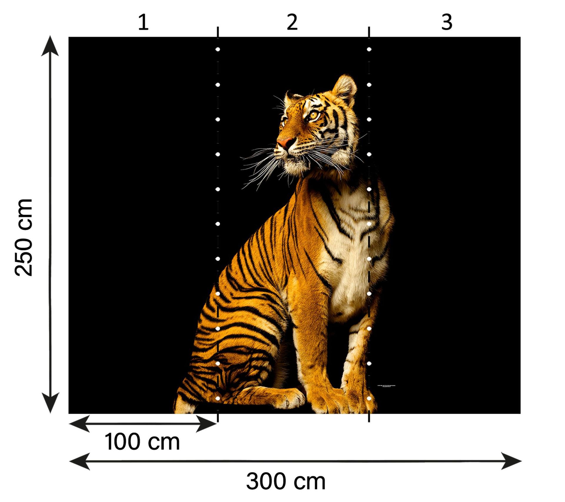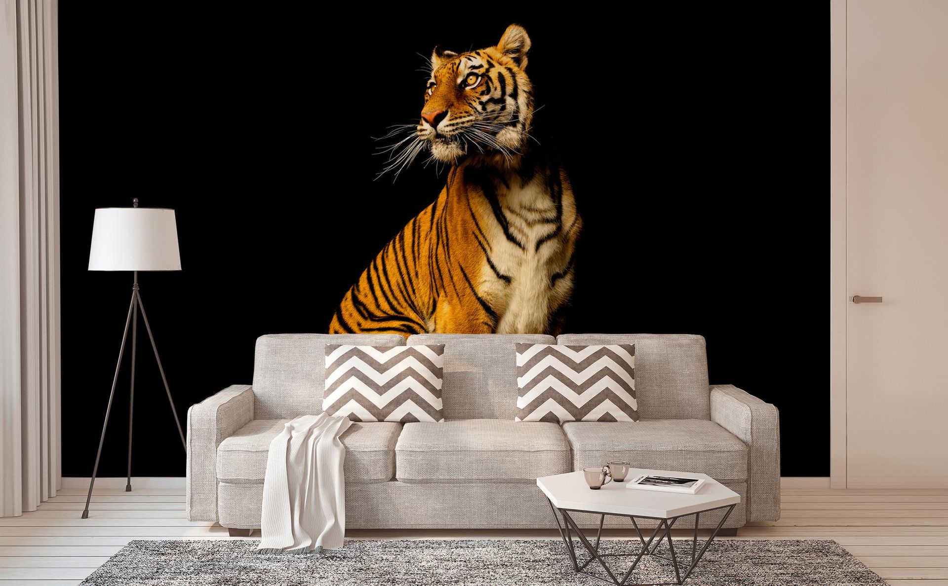 Verleihen Sie Ihren Räumen mit dieser beeindruckenden Fototapete eine exotische Atmosphäre. Das Hauptmotiv zeigt einen majestätischen Tiger in lebendigen Orangetönen mit detailreichen schwarzen Streifen und weißen Akzenten, die für dynamische Kontraste sorgen. Dank des fotorealistischen Stils wirkt die Darstellung täuschend echt und fügt sich zugleich stilvoll in moderne Innenraumkonzepte ein. Die hochwertige Tapete ist leicht anzubringen und besticht durch ihre außergewöhnliche Farbtiefe und detaillierte Schattierung, die das beeindruckende Portrait des Tigers noch mehr zur Geltung bringt.