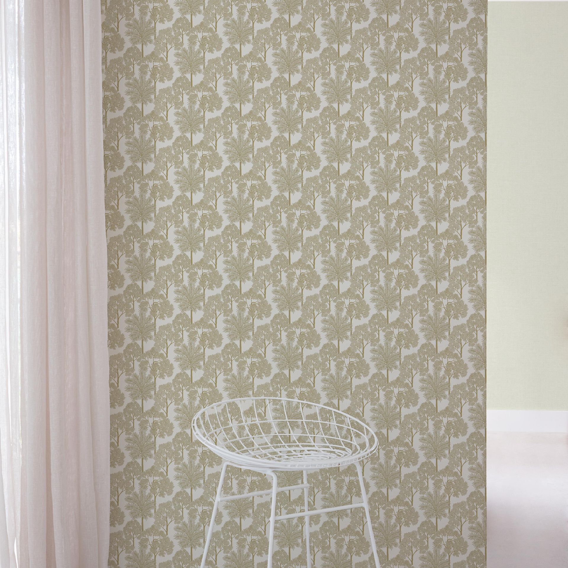 Diese raffinierte Tapete aus der Arcadia-Kollektion von Grandeco vereint klassische Botanik mit zeitloser Eleganz. Das Muster zeigt detailliert gezeichnete Bäume mit feinen Blattstrukturen auf cremefarbenem Untergrund. Die Bäume sind in einem warmen Beige-Gold gehalten und variieren in ihrer Größe und Blattwerk-Struktur – von großflächigen, dicht beblätterten Exemplaren bis zu zierlicheren, filigraneren Varianten. Die Linienführung wirkt fein und präzise, was dem Design eine hochwertige, klassisch-botanische Anmutung verleiht.