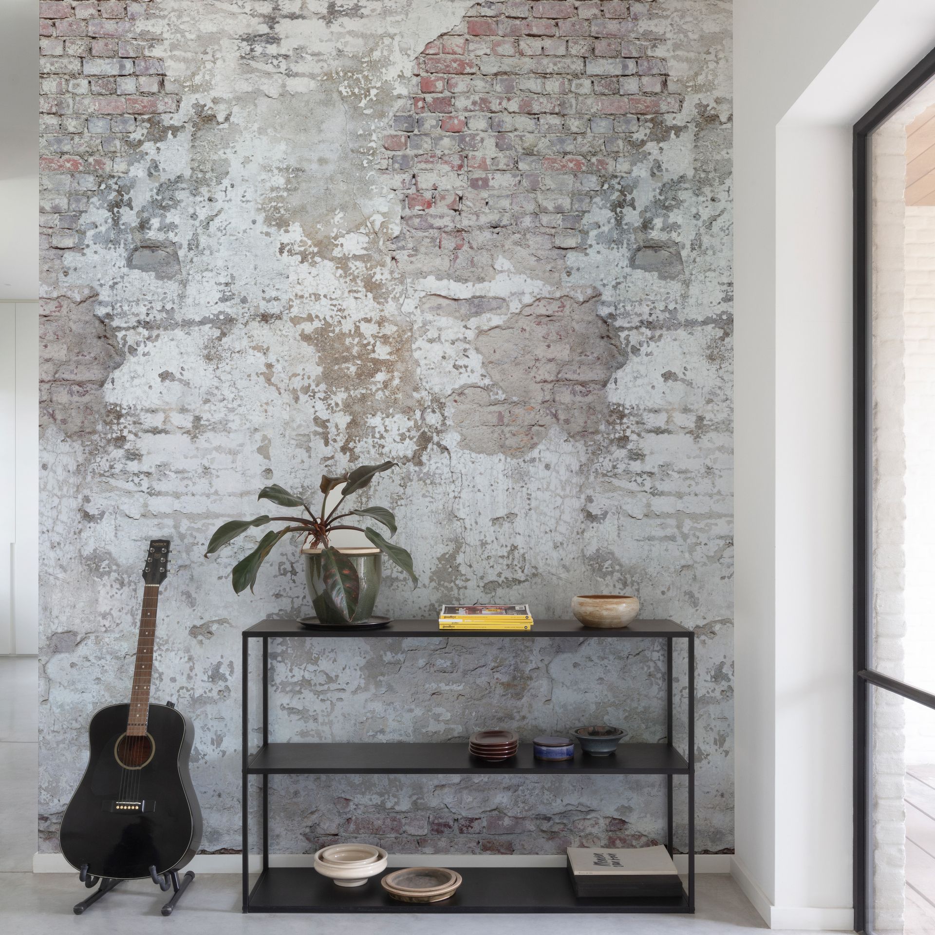 - Look: Authentische Vintage-Backsteinmauer mit verputztem Finish
