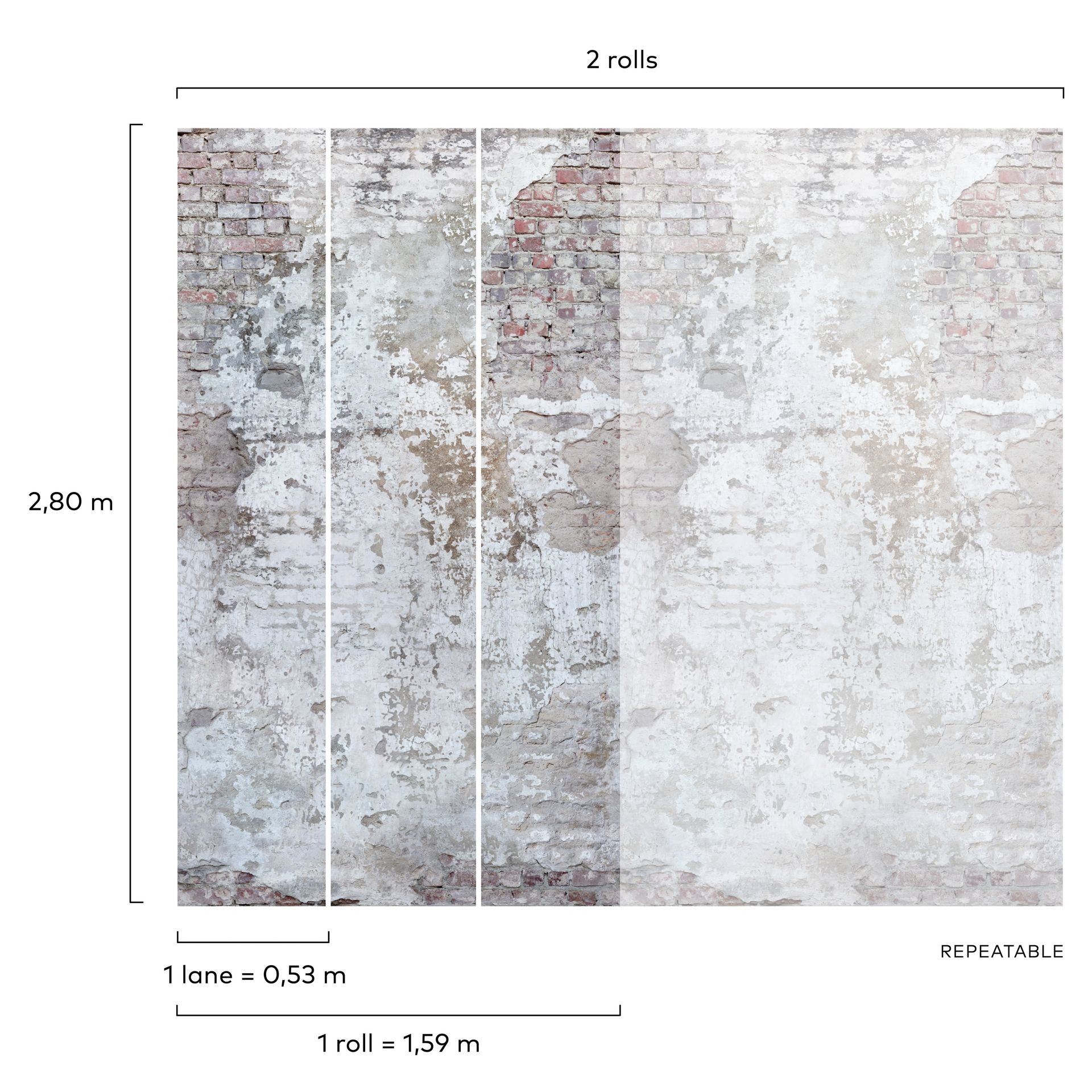 | Digitaldruck: | 3 Bahnen (1,59 x 2,80 m) |