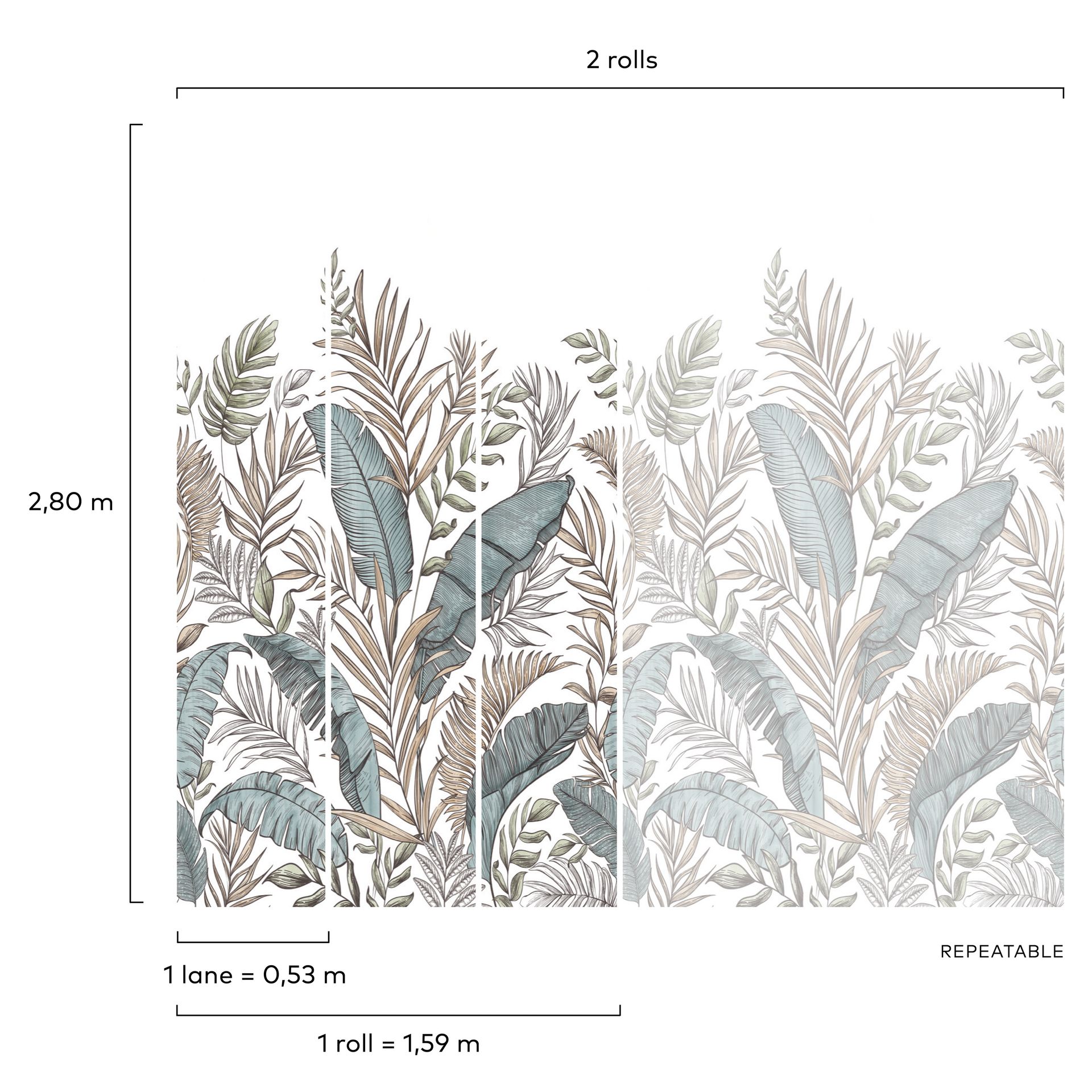 | Digitaldruck: | 3 Bahnen (1,59 x 2,80 m) |