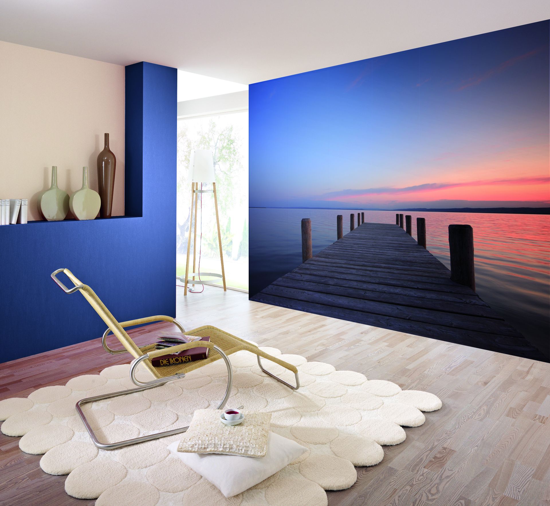Neue Perspektiven eröffnet uns dieses hochwertig bedruckte Vlies, dessen Badesteg geradewegs dazu einlädt, direkt ins Wasser zu springen. Einladung angenommen. Das maximal 372cm breite und bis zu 260cm hohe Motiv auf hochwertigem Vliesträger ergibt sich aus 8 Bahnen á 46,5cm Breite.