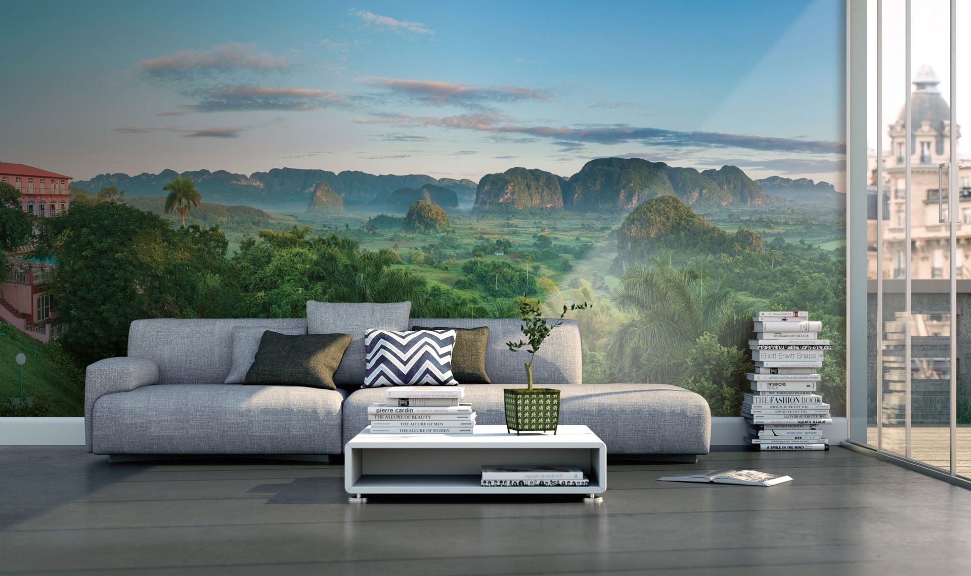 created by Daniel Geier: Urlaubssehnsüchte machen sich bei diesem Anblick breit. Denn dieses einzigartige Fotowandmotiv erstreckt sich auf 279 x 280 cm und schenkt Ihnen eine immergrüne Aussicht auf das Hinterland Cubas. Eine perfekte Bühne, um es sich davor mit einem guten Buch oder den Fotos des letzten Urlaubs bequem zu machen und einfach nur zu entspannen.