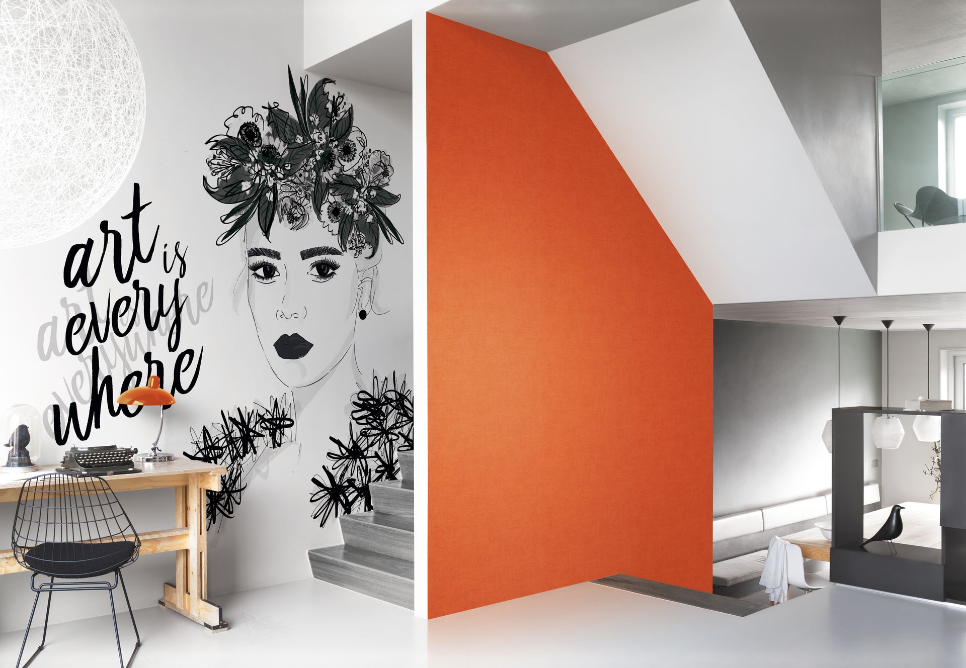 created by Kruth Design: Kunst ist überall und in besonders ausdruckvoller Form jetzt auch an Ihrer Wand! Dieses von Hand gezeichnete Porträt thront auf 279 x 280 cm und entfacht seine kreative Schönheit auf 6 Bahnen, die Sie ganz einfach auf der eingekleisterten Wand aufbringen. Denn Poster aufhängen war gestern.