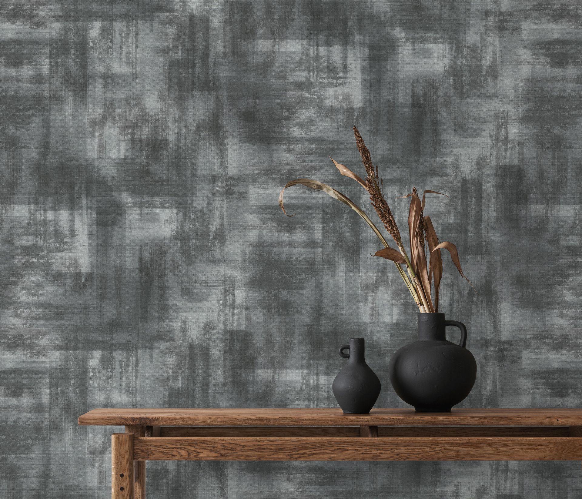 Abstrakte Tapete in Grau mit malerischer Pinselstruktur