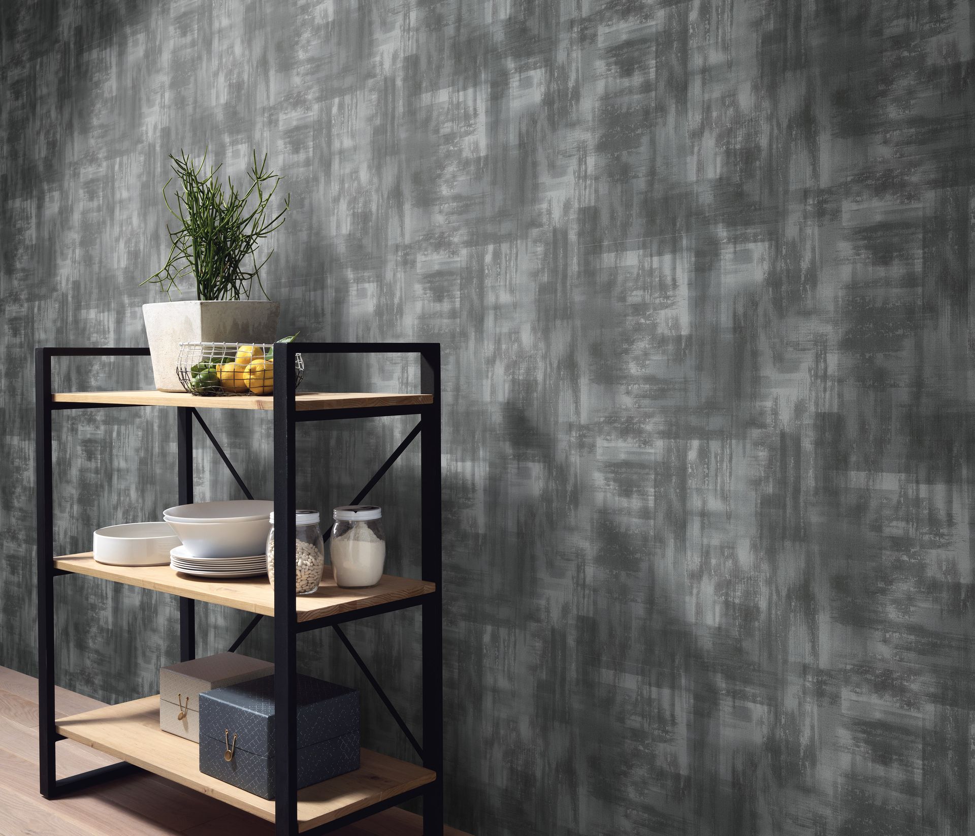 - Empfehlung: Als Akzentwand für künstlerische Statements oder im ganzen Raum für durchgängige urbane Atmosphäre