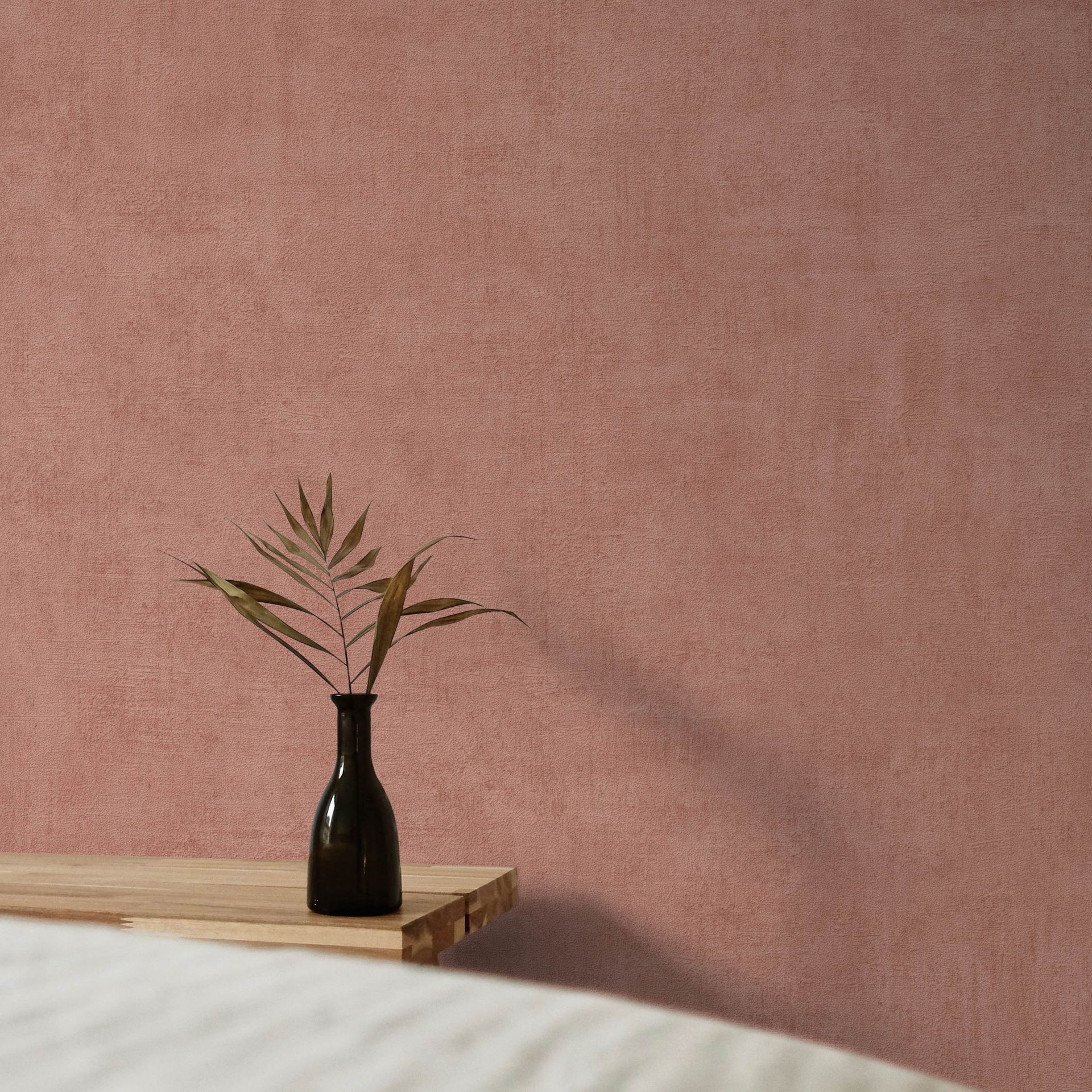 Besonders im Schlafzimmer entfaltet dieser Farbton seine beruhigende Wirkung und schafft eine gemütliche, entspannte Atmosphäre. Auch im Wohnzimmer oder in der Ankleide setzt die Tapete einen sanften, femininen Akzent. Die ruhige Farbgebung eignet sich hervorragend für ganze Räume und bildet eine stilvolle Grundlage für vielfältige Einrichtungskonzepte.