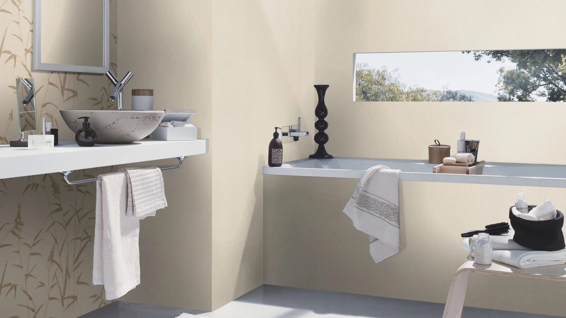 Couture für die Wand: Wer seine Lieblingsplätze neu einkleiden möchte, kann sich jetzt über Designs in feiner Stoff-Optik freuen. Hier zeigt sich ein helles Puder, dessen leichte Webstruktur einen natürlichen Background bildet. Der Look wirkt offen, frisch und wunderbar wohnlich ? selbst Gäste fühlen sich so auf Anhieb wie Zuhause.