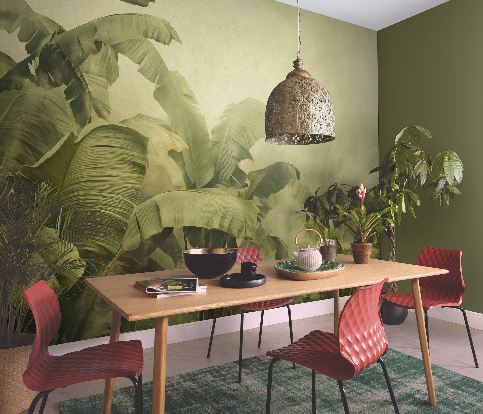 Die Farbgebung in warmen, gedämpften Naturtönen wirkt beruhigend und schafft eine verträumte Raumatmosphäre mit exotischem Flair. Durch die großflächige Darstellung und die Tiefenwirkung entsteht eine raumvergrößernde Wirkung. Die Tapete eignet sich hervorragend für Wohnzimmer, Schlafzimmer, Esszimmer oder Wellness-Bereiche und lässt sich sowohl als Akzentwand als auch im ganzen Raum einsetzen.
