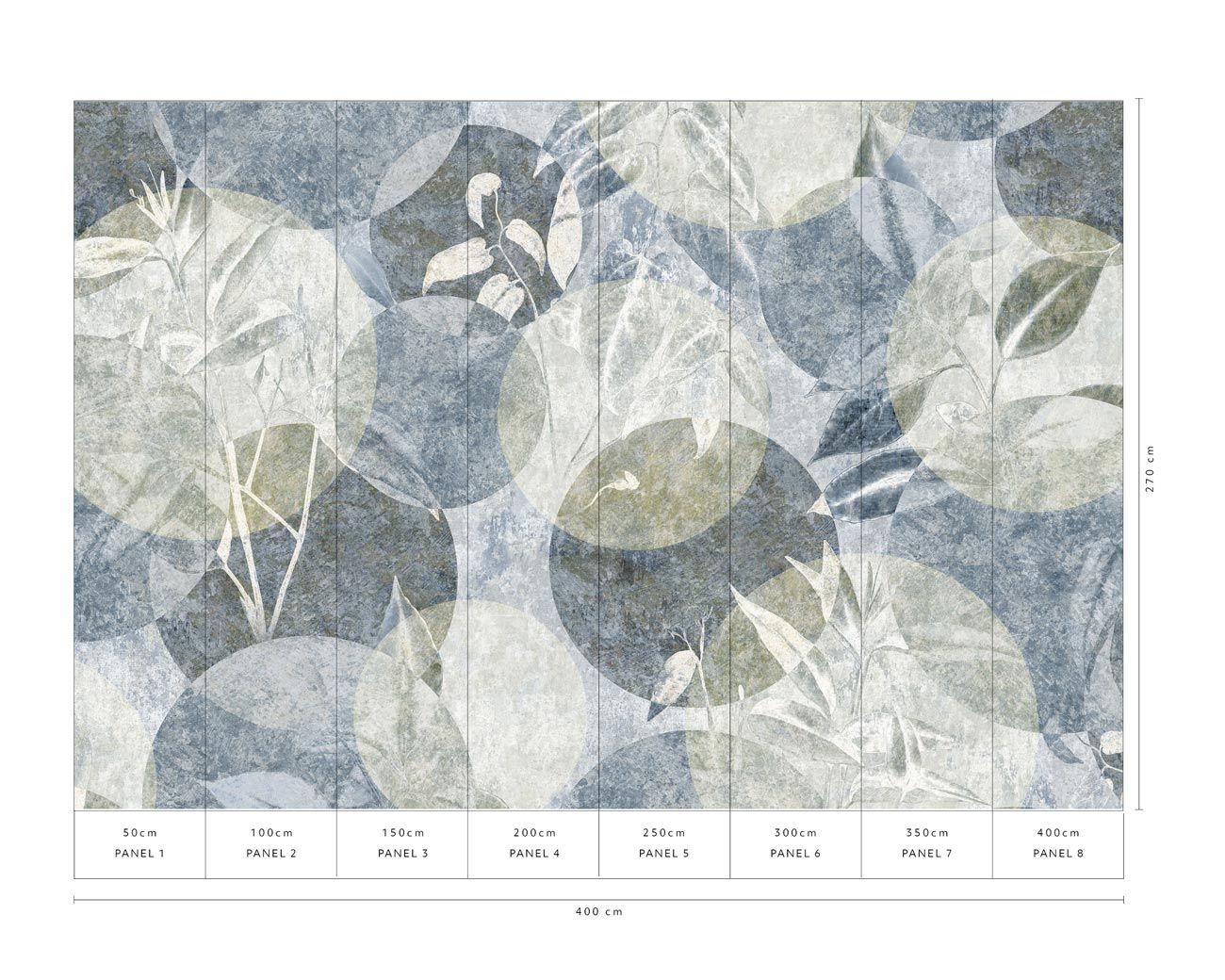 Diese abstrakte Tapete aus der Art Edition von Erismann beeindruckt durch ihre künstlerische Aquarell-Optik. Großformatige Kreise und Blätter verschiedener Pflanzenarten überlagern sich in sanften Schichten und erzeugen ein harmonisches Spiel aus Blaugrau, Beige, Salbeigrün und Creme. Die transparente Darstellung der Blätter verleiht dem Design eine leichte, luftige Anmutung.